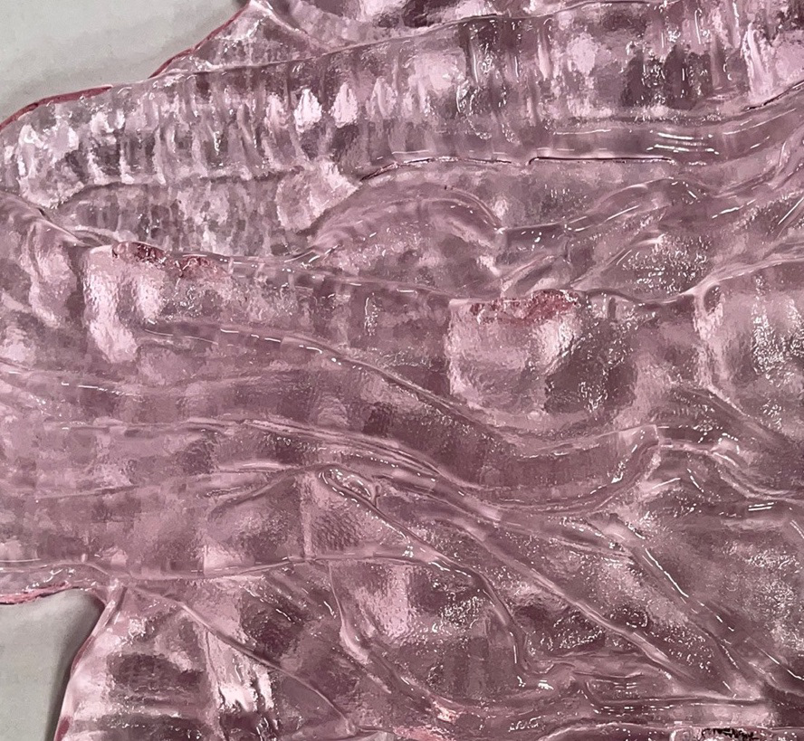 Because of the thickness of the piece, it was in the kiln for 21 days - most of that time for a very slow, controlled cooling. This annealing process eliminates any potential stress in the glass that could be created from the temperature differentials between inside the core and the outside. So, although the sculpture represents stress, its physical form is stable and solid.