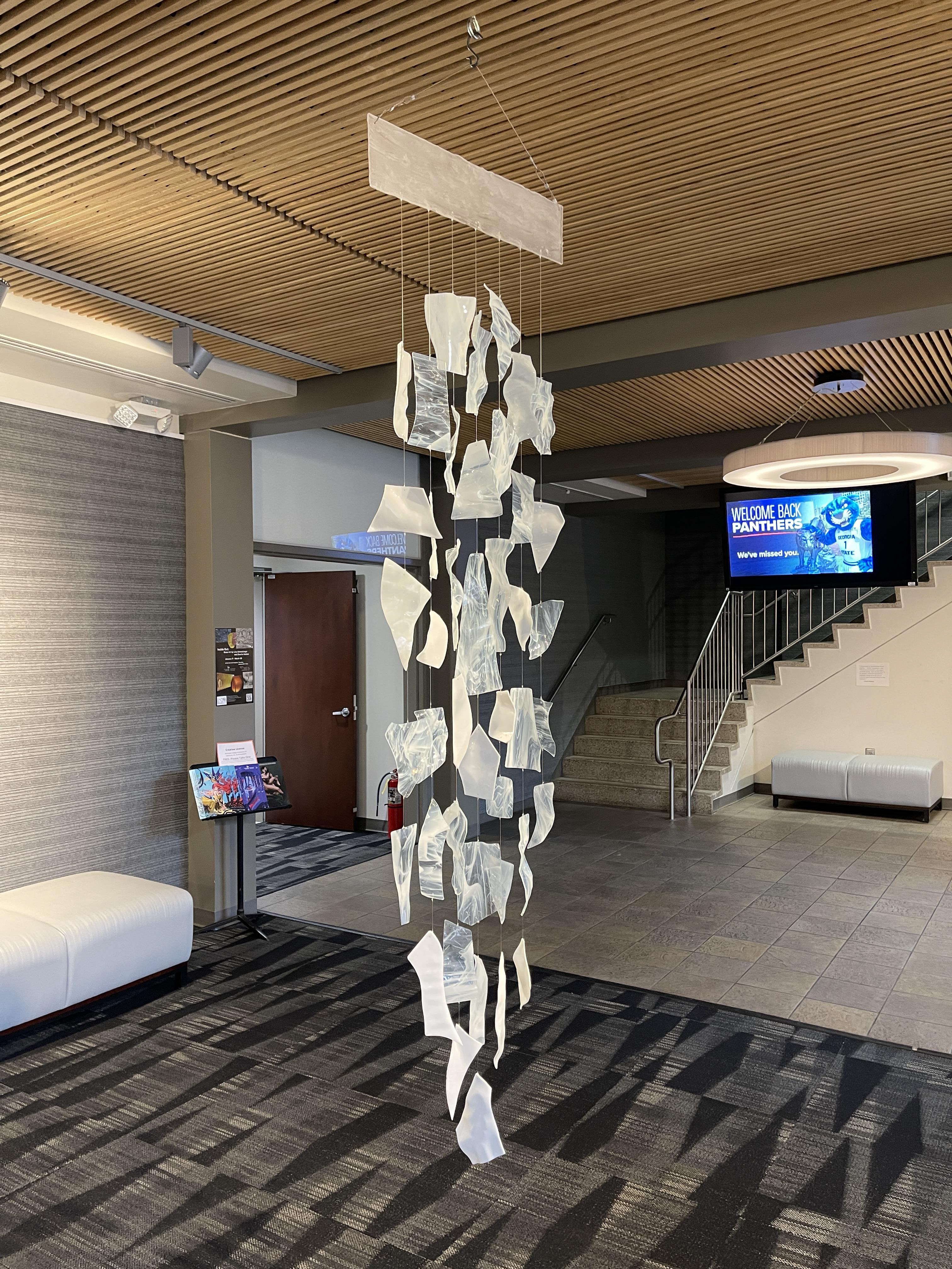 "Laundry," a mixed media installation, includes 15 pieces of cast glass fabric and clothing. Individual pieces are available for purchase, and personal clothing may be commissioned for casting.